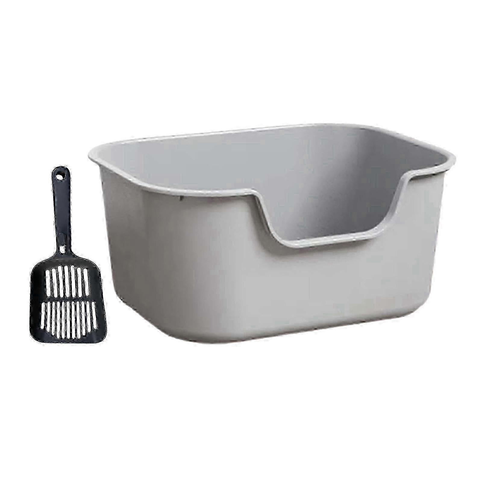 Cat Litter Box with Open Top, High Sides, Splashproof Sand Container and Scoop: All-in-One for Cats
