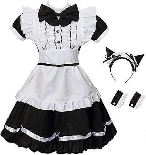 Catchcostume Women s Cat Ear French Maid Costume 5 Pieces Fancy Dress with Apron for Halloween Cosplay