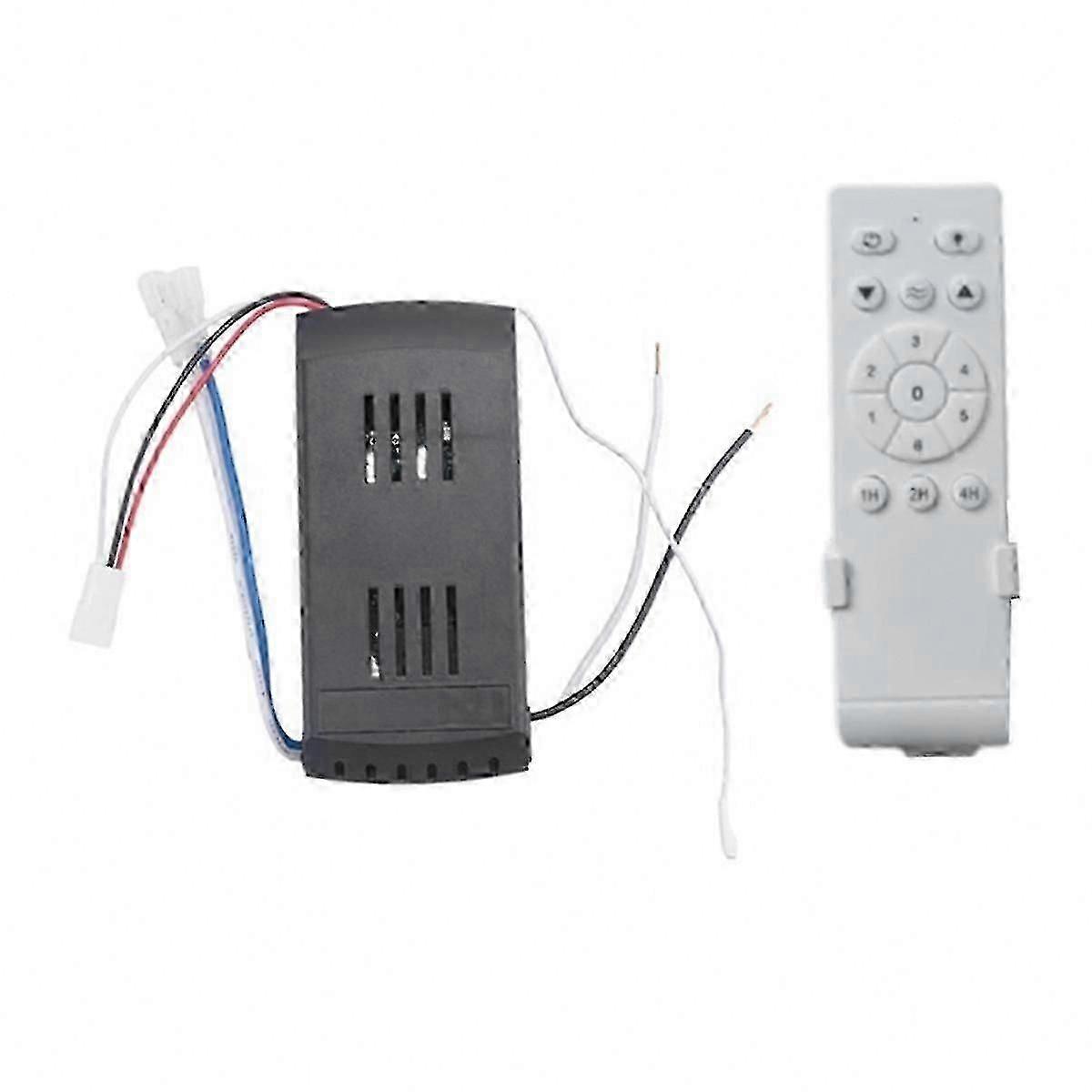 [Multifunctional Ceiling Fan Remote Control] This remote control kit converts a standard ceiling fan into a remote-controlled fan. Features 6-speed settings (high/medium/low) and off; 3 timer options (1H, 2H, 4H); reversible direction control (forward/reverse); and one-button light on/off control (no dimming). [Strong Signal] Offers extended operating range. Converts traditional ceiling fans with lights into remotely controllable units. [Ceiling Fan Remote Control Kit] Includes a remote control bracket for convenient mounting, such as on a bedpost—eliminating the need to get up to turn off lights or fans. Helps prevent pets from accessing the remote. [Universal Ceiling Fan Remote Control] Simple installation—no bulb or fan removal required. Only basic wiring is needed. Compatible with most 6-speed DC ceiling fans and downrod-mounted fans. Suitable for use in homes, restaurants, offices, hotels, clubs, and garages. Note: Designed exclusively for DC ceiling fan lights—not compatible with AC ceiling fan lights. Slight variations in product appearance and labeling may occur between batches, but these do not affect functionality. Color: Black & White Material: Plastic Package Contents: 1 x Controller 1 x Remote Control (includes 2 x AAA batteries) Note: Color representation may vary slightly due to lighting and screen settings. Measurement tolerance: ±1–3 cm.