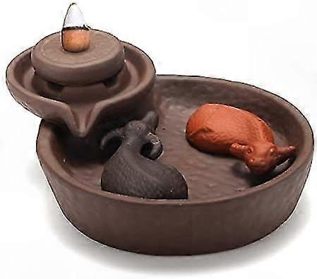 Ceramic Backflow Incense Burner with Cone and Stick Holder for Buddhist Decoration