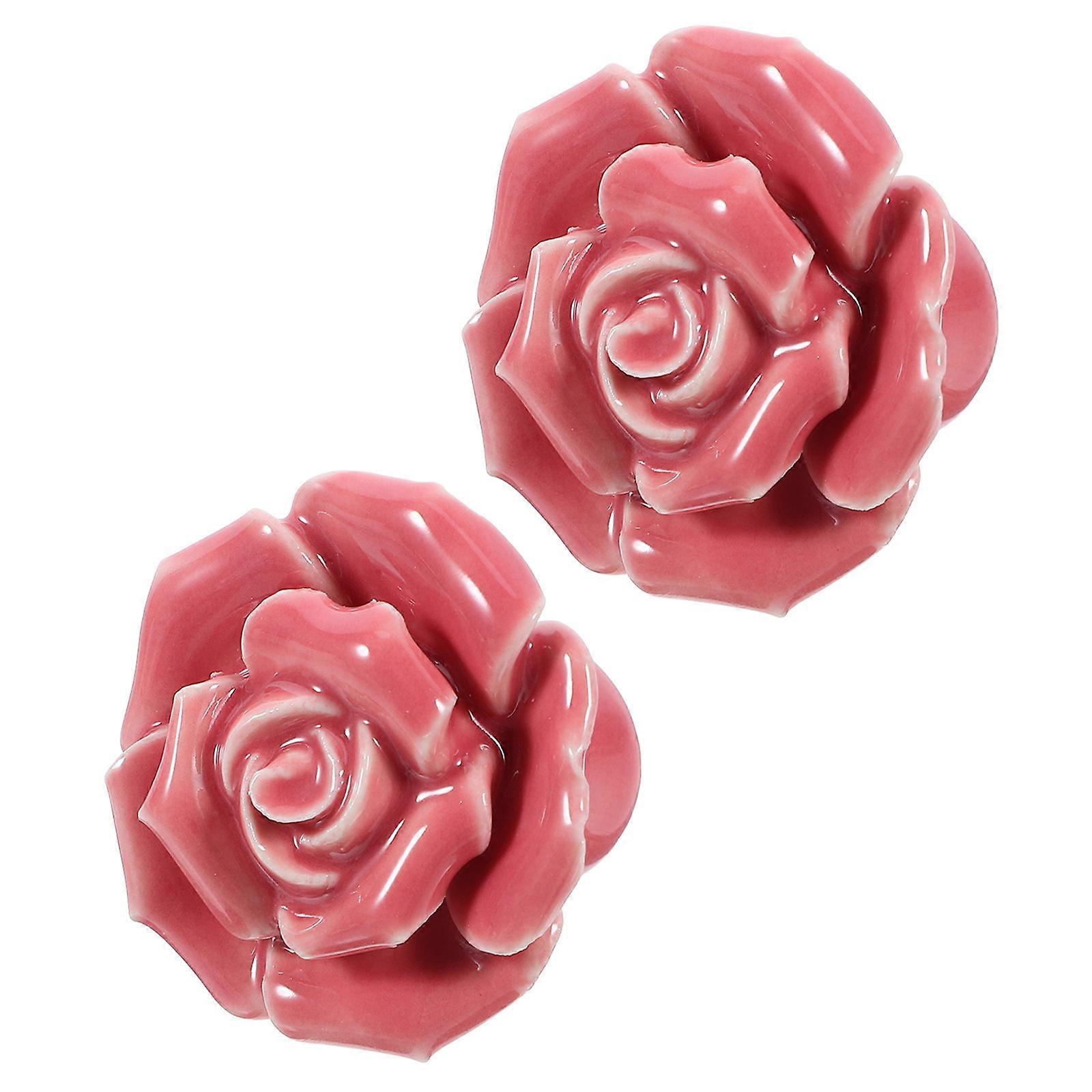 Ceramic Cupboard Knobs Rose Pull Handles for Drawer Kitchen 2Pcs Set