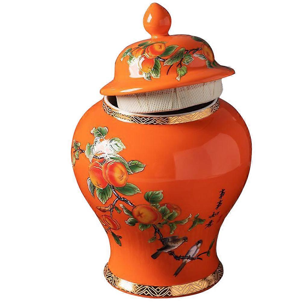 Ceramic Tea Jar for Storage Use 2Pcs Orange Multi-Function Airtight Jar