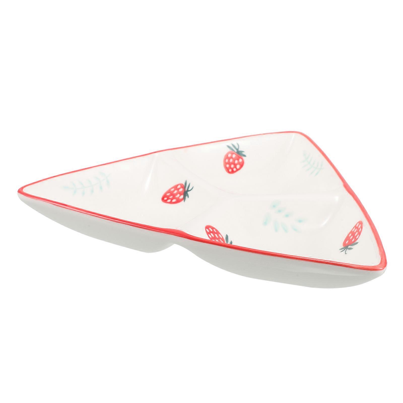 Ceramic Triangular Divided Plate for Serving Appetizers Red
