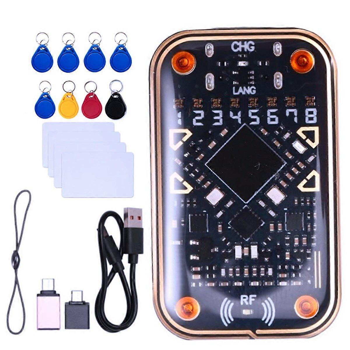 Upgraded Version Chameleon V2.0,With Restart Function! Our small and versatile device can clone and emulate a wide range of RFID tags and cards. With This Device, you can create copies of RFID tags and cards, which can be used to access secure areas or equipment that require RFID authentication. You can also emulate and stores different types(125KHZ/13.56MHZ) of RFID cards. This Device is a valuable tool for anyone working with RFID technology, whether you're an , security professional, or just a curious hobbyist. And thanks to its compact and portable design, you can take it with you wherever you go! Due to different batches, there may be differences in product appearance, color, and printed text, which not affect the use. Color:Black & Transparent Material:plastic Package Contents: 1 x RFID Reader 2 x Adapter(Color and appearance are random and cannot be specified) 1 x USB Cable(Color is random, cannot be specified) 4 x UID Keychain(The color and appearance are random, and the designation is not accepted) 4 x CUID Keychain(The color and appearance are random, and the designation is not accepted) 4 x CUID Card Only the above package content, other products are not included. Note: Light reflection and different displays may cause the color of the item in the picture a little different from the real thing. The measurement allowed error is +/- 1-3cm.