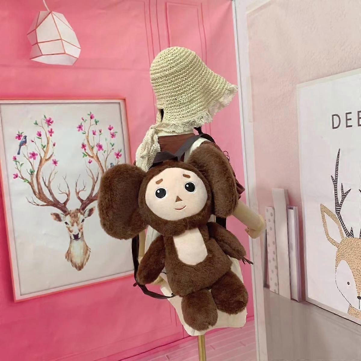 Cheburashka Backpack Cheburashka Plush Backpack Soft Doll Russian Cartoon Big Ear Monkey Stuffed Doll Bag Movie Character Toys