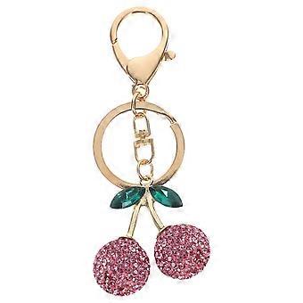 Cherry Keychain with Rhinestone for Decor - Fruit Keychain Charm