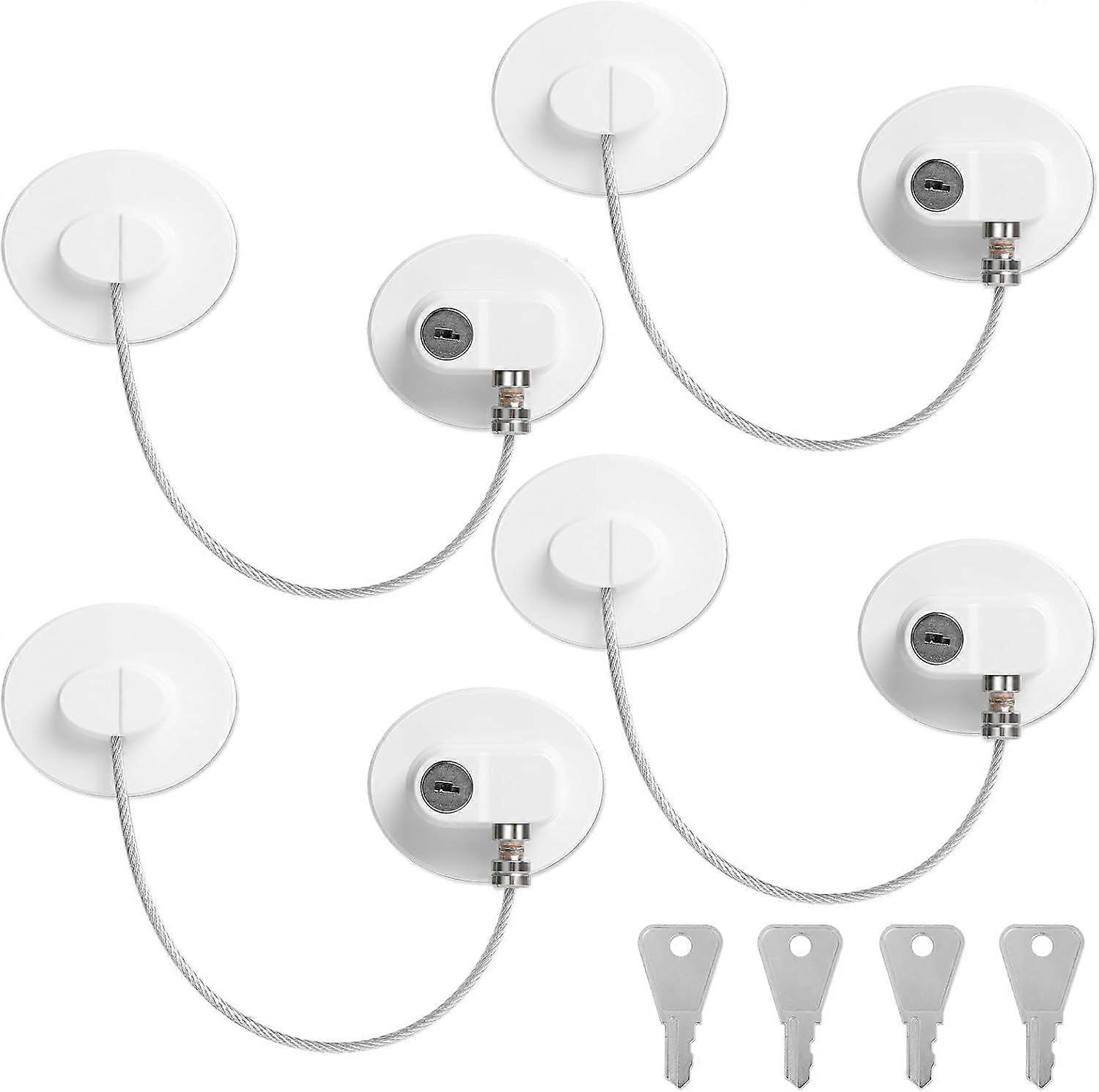 Child safety window lock with 4 keys, for doors, windows, refrigerators, drawers and washing machines, focused on child safety.