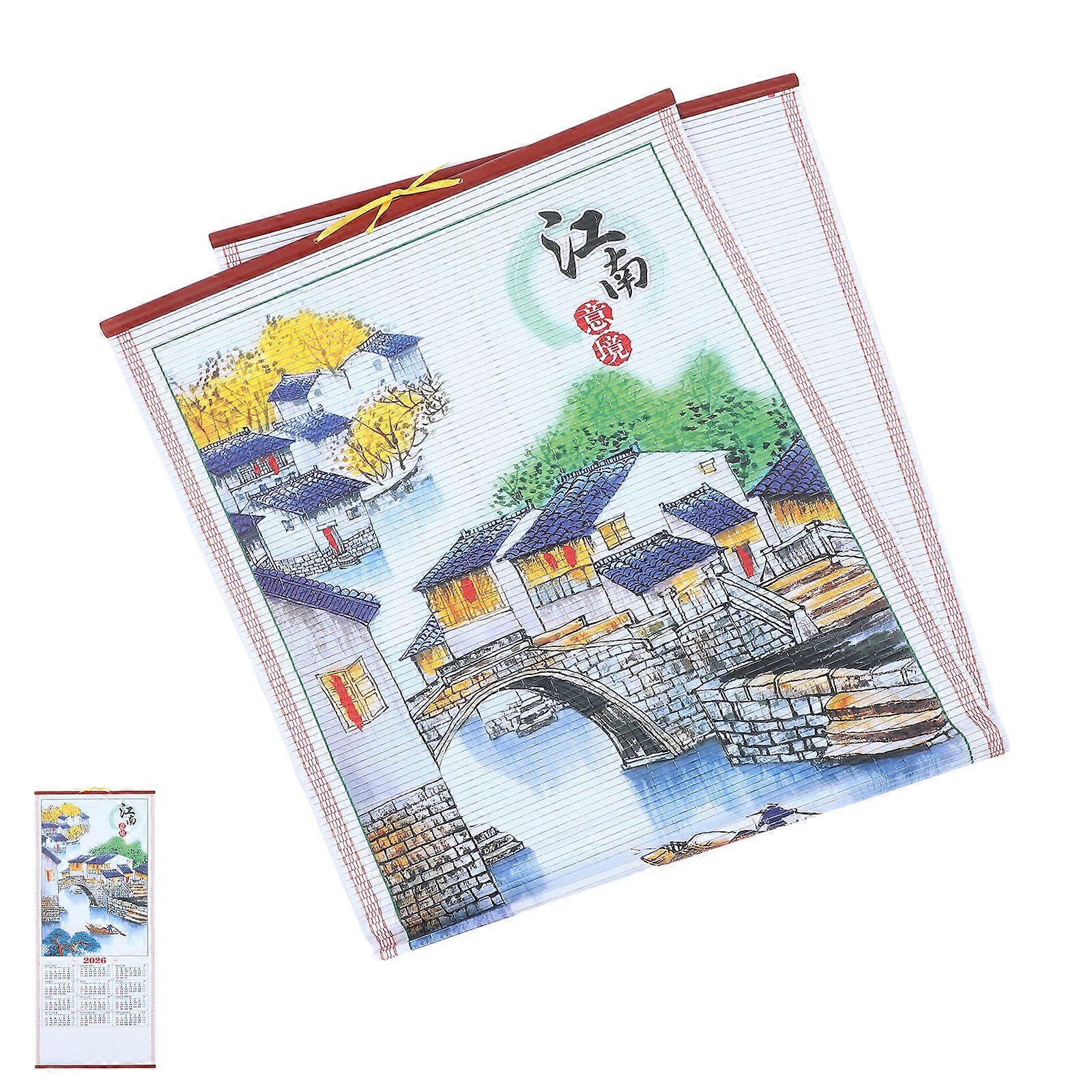 Chinese Zodiac Calendar with Imitation Rattan for 1 Hanging Scroll