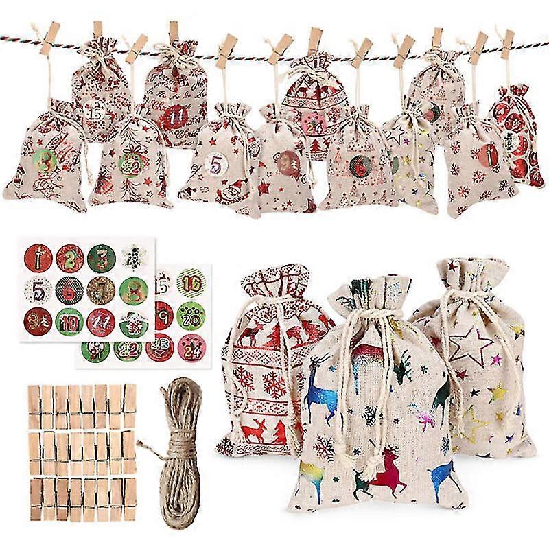 Christmas DIY Advent Calendar with 1-24 Countdown Numbers Bag Candy Storage Pouches