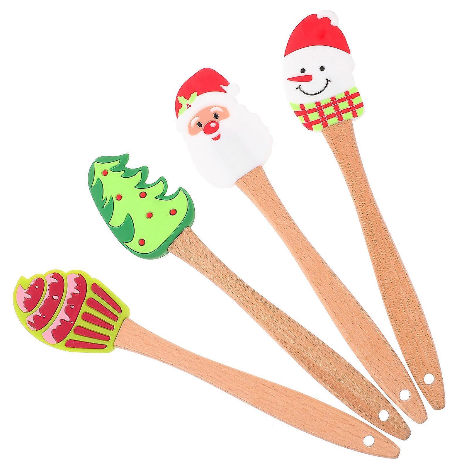 Christmas Themed Silicone Spatula With Wood Handle For Home Kitchen Use In Assorted Color 4Pcs