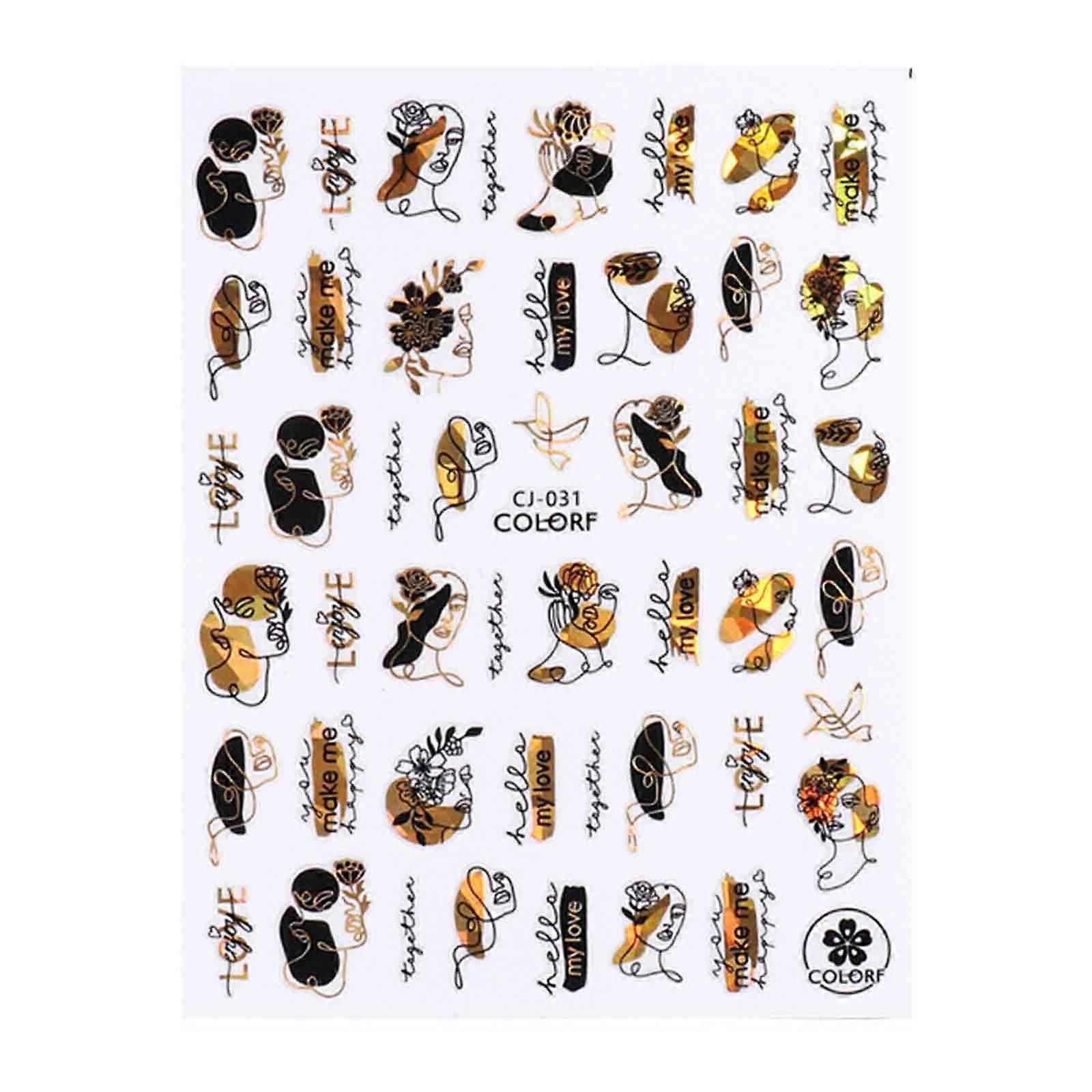 CJ-flower Gold Leaves Nails Art Stickers Transfer Paper Design Nail Stickers Tropical Style 3D Manicure Summer Theme