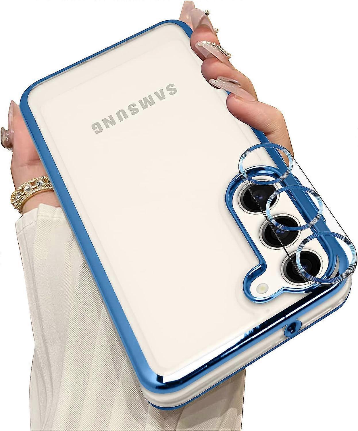 Clear Case for Samsung Galaxy S23 Plus Case [Camera Lens Protector] Plating Case [Never Yellow] Soft Slim Transparent Phone Case S23 Plus Cover-Black