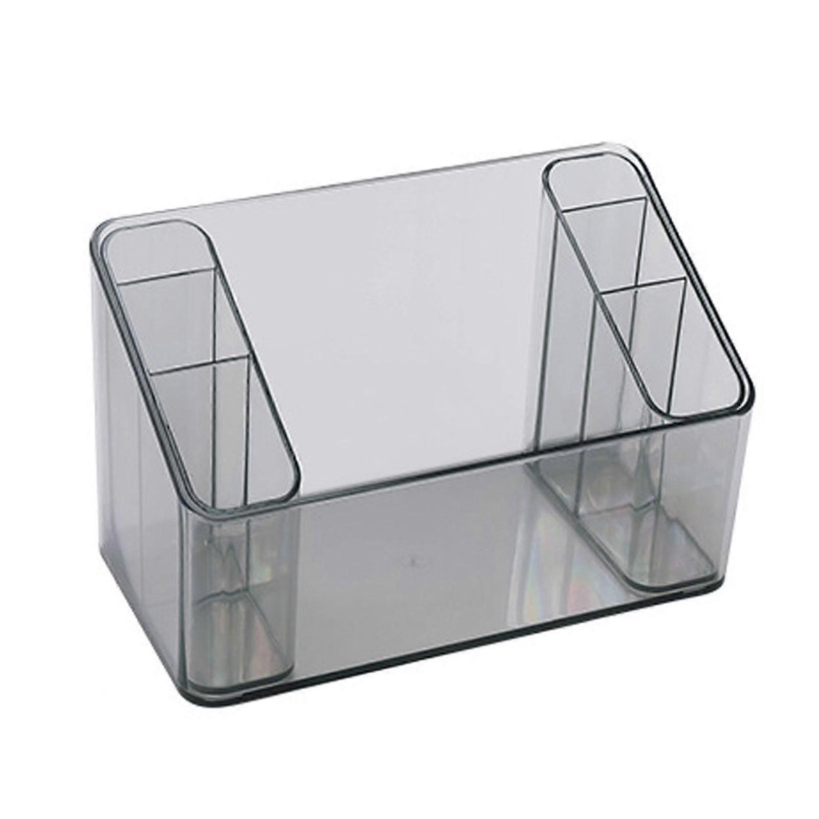 Features:Storage Container: Made by durable clear ABS plastic, sturdy and durable design, not easy to be broken, protecting your small items securely.Divided Storage: A great helper for organizing your cosmetics. Organizing will be much easier if you choose our storage boxes.Find Your Items Faster: No more looking for your precious stuff. The clear makeup holder enables you to find what you need from any angles.Multi Purpose: This storage box can store makeup brushes, sponge beauty, lipsticks, face cleanser, and it can store cotton swab and more. Specifications:Material: ABS Size: 16*8*10cm