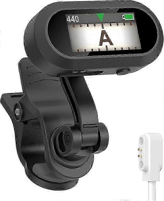 Clip-on tuner rechargeable TFT screen for guitar, bass, ukulele and wind instruments, headstock chromatic tuner calibrated 410-460Hz, easy to read in
