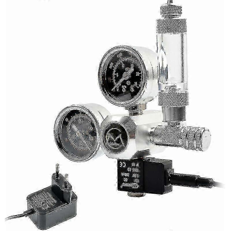 CO2 pressure regulator, 12V adapter dual pressure gauge, with bubble counter check valve, W21.8 interface