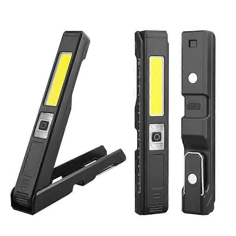 COB Multi-Function Work Light: Foldable, Magnetic, Rechargeable Flashlight with Ruler & Red-Blue Warning Light