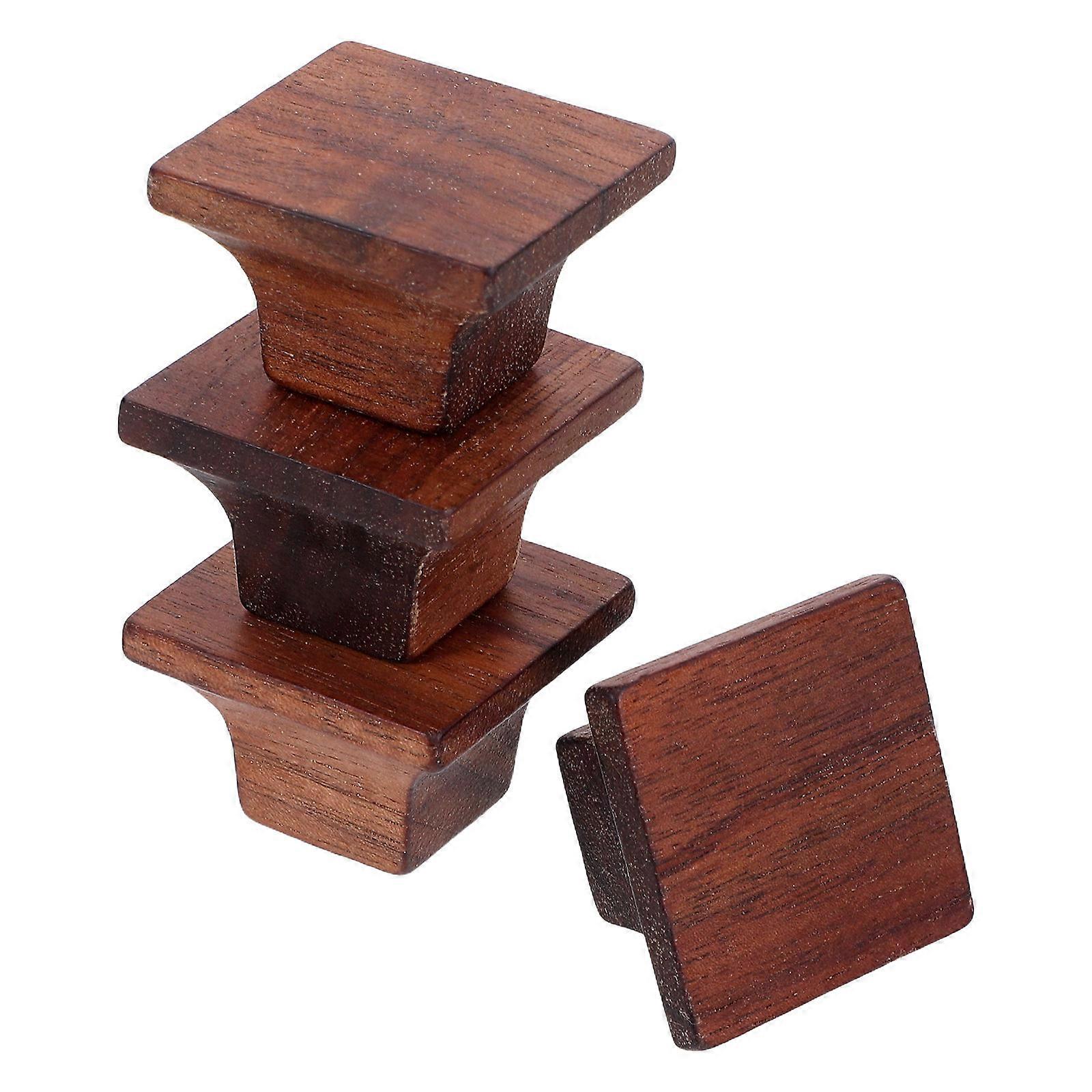Coffee Wood Cabinet Handle Square Drawer Knobs Pulls Handles for Home 4Pcs