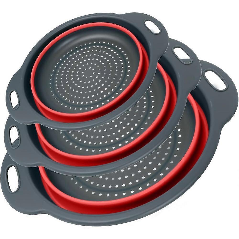 Collapsible Colander 3-Pack Set Space-Saving Foldable Kitchen Strainer with Non-Slip Base Durable Thickened PP+TPE Collapsible S