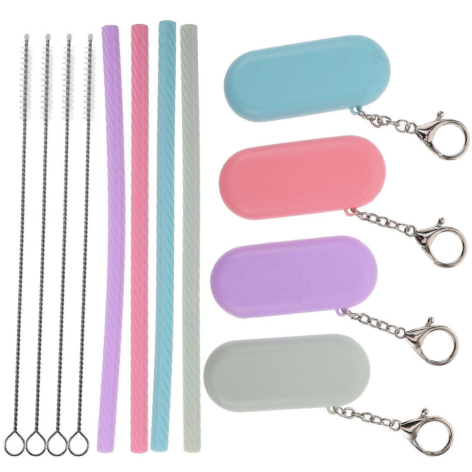 Collapsible Silicone Straws for Drinking 4Sets Reusable Travel Straws with Cleaner