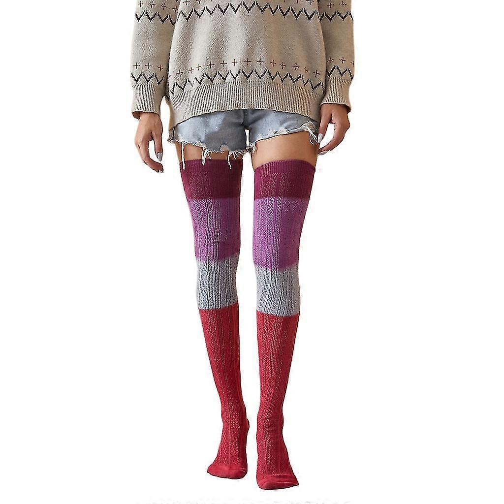 Colorblock Tie Dye Cable Knitted Over Knee Long Stockings Leg Warmers For Women