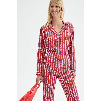 Compania Fantastica قميص قصير أحمر خفيف الوزن بطبعة هندسية