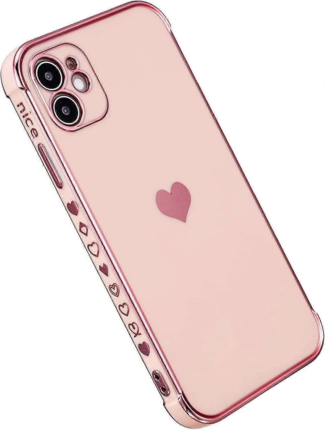 Compatible for iPhone 11 6.1 Inch Case Plating Love Heart Phone Case, Fun Cute Side Small Pattern Soft TPU Airbag Anti-Fall Shockproof Camera Protecti