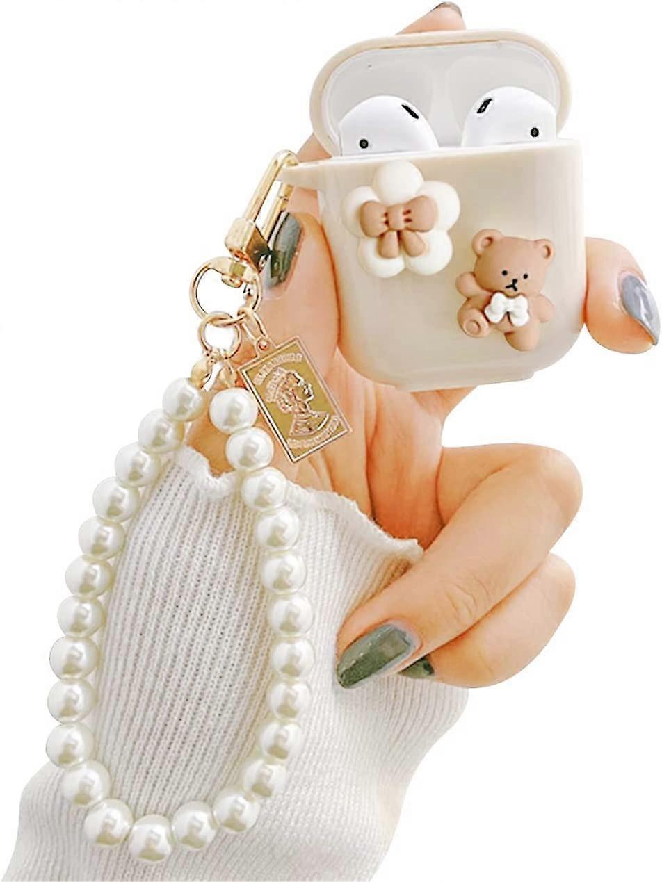Compatible with AirPods Case with Girls Cute Simple 3D Bear Design Smooth Soft TPU Keychain Cover Case for Airpods 2 &1,Cute for Airpods-Brown Bear