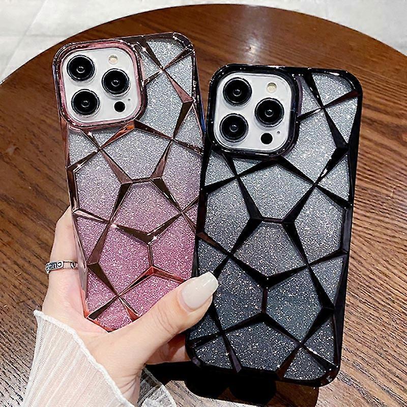 Compatible with iPhone 15, Apple 14 Pro Max diamond pattern, gradient glitter, electroplated 3D protective case