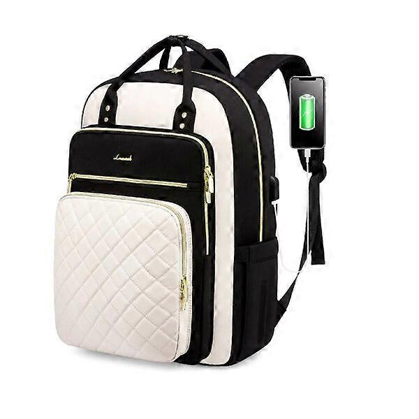 1. This backpack is durable, soft, lightweight, and comfortable to wear. It is very sturdy, tear-resistant, and waterproof. The main fabric is polyester. 2. This backpack has two large compartments and two small compartments. It can hold your laptop and other personal items. The multiple compartments allow you to easily find your things. This backpack has two shoulder straps for normal carrying on the shoulders, and there is also a handle on the top, so it can be carried like a briefcase. There is a strap on the back of the backpack that allows you to hang the backpack on the handle of a suitcase, which is very convenient for travel. 3. Laptop protection design: The laptop compartment is padded to ensure the safety of the computer. There is also a strap to secure the laptop, which can prevent the computer from slipping or moving. 4. This backpack has a USB port with a data cable, so you can conveniently connect your own power source (not included) to charge electronic devices.