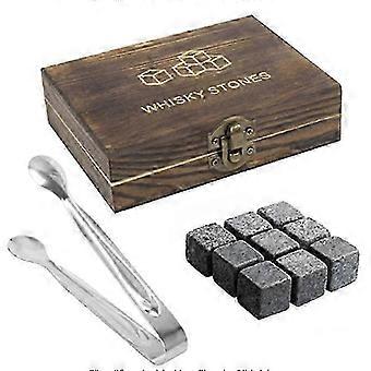 Cooling Ice Cubes for Reusable Whiskey Rocks Set in Wooden Box with 9-Pack Subscription