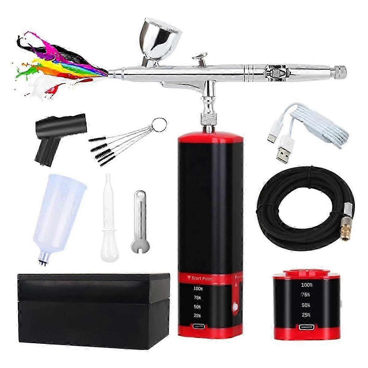 Clear battery level and worry-free battery life This product uses a removable battery that can be separated with a simple touch. In addition, it can be easily replaced with a spare battery purchased elsewhere for long-term painting. In addition, the product is equipped with a battery power monitor, which can clearly see the remaining power, effectively preventing interruptions to work due to sudden battery exhaustion. Diverse connections and easy operation This product provides two connection methods and is equipped with a pressure-sensitive switch. You can connect the directly to the cordless compressor or connect it via an air hose. Even during long working hours, holding the is light and easy when connected to the air hose. The automatic switch design is very convenient, and the automatic start and stop of the compressor can be controlled by simply pressing or releasing the lever. Simple operation allows you to stop working at any time and enjoy a smooth experience.High compatibility and strong air pressure The connection screw is a universal 1/8 size, which can adapt to airbrushes from different manufacturers without the need for additional accessories. It can be used with almost any you like. In addition, it also has high air pressure, which effectively improves the adverse effects caused by insufficient air pressure and provides excellent coating effects. Complete kit, convenient and practical, equipped with two paint cups of different capacities, 7cc and 20cc, which can complete large-area spraying work at one time. At the same time, a Type-C charging cable is also included, which supports fast charging through the Type-C port and is compatible with computers, mobile power supplies, and AC adapters. Suitable for beginners and widely applicable Our products are simple to operate, do not require advanced skills or complicated procedures, and are very suitable for beginners and professionals. and small, it can be put in a backpack or even a pocket, suitable for such as shoe painting, , cake decoration, nail art, handicrafts, model coloring, illustration, etc. Colour:As Shown Material:Metal Package Contents: 1 set * air brush paint Only the above package content, other products are not included. Note: Light reflection and different displays may cause the color of the item in the picture a little different from the real thing. The measurement allowed error is +/- 1-3cm.