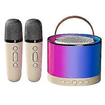 Cream Color Mini Karaoke Machine with 2 Wireless Microphones, Portable Bluetooth Speaker