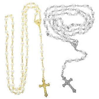 Crucifix Necklace with Artificial Pearl Chain and Alloy Material for Decoration Assorted Color