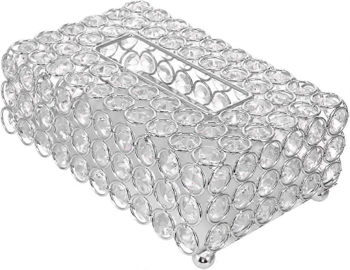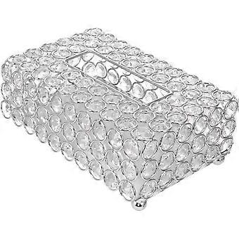 Crystal Tissue Box Cover Rectangular Decorative Toliet Paper Box Napkin Holder (Silver)
