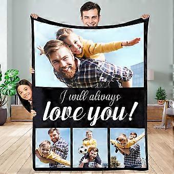 Custom Blanket with Photos/Text, Personalized Picture Blanket Throw Using My Own Photos, Customized Memorial Mothers for Mom Dad Family Friends - 4 Si
