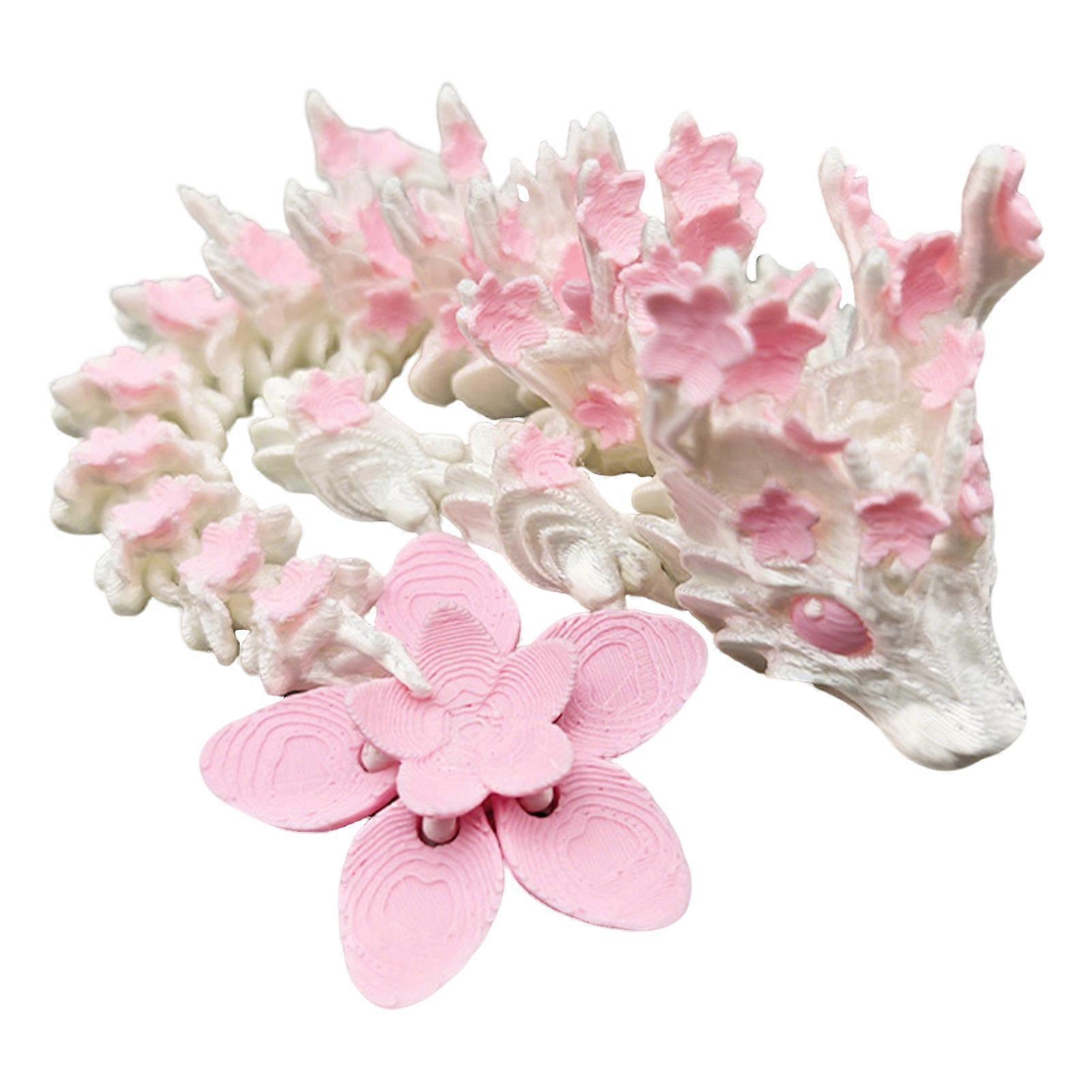 D��coration de bureau mobile Dragon Sakura imprim��e en 3D, mod��le de collection, figurine fantaisie blanc rose, d��cor d'anime
