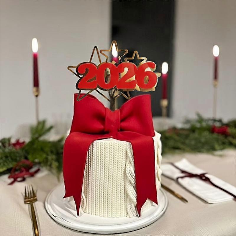 D��coration de gateau joyeux nouvel an, 1 pi��ce, rouge dor��, bonjour 2026, en acrylique, d��corations de gateau pour no?l, nouvel an, f��te