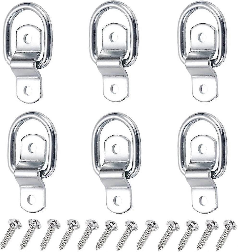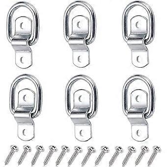 D-hitch Hook,6 Pcs D-ring Tie-down Rings Stainless Steel Tie-down Rings With Mounting Bracket And Screws 1/4" D-rings For Trailers Van Trucks Road Hor