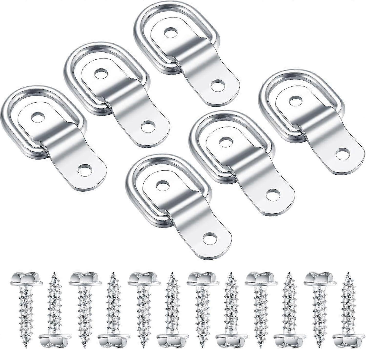 D-Rings, Stainless Steel Lashing Hook, Lashing Ring Mounting Ring, Lashing Strap 6 Pcs and 12 Screws for Car Trailer, Wooden Hammock, Camping