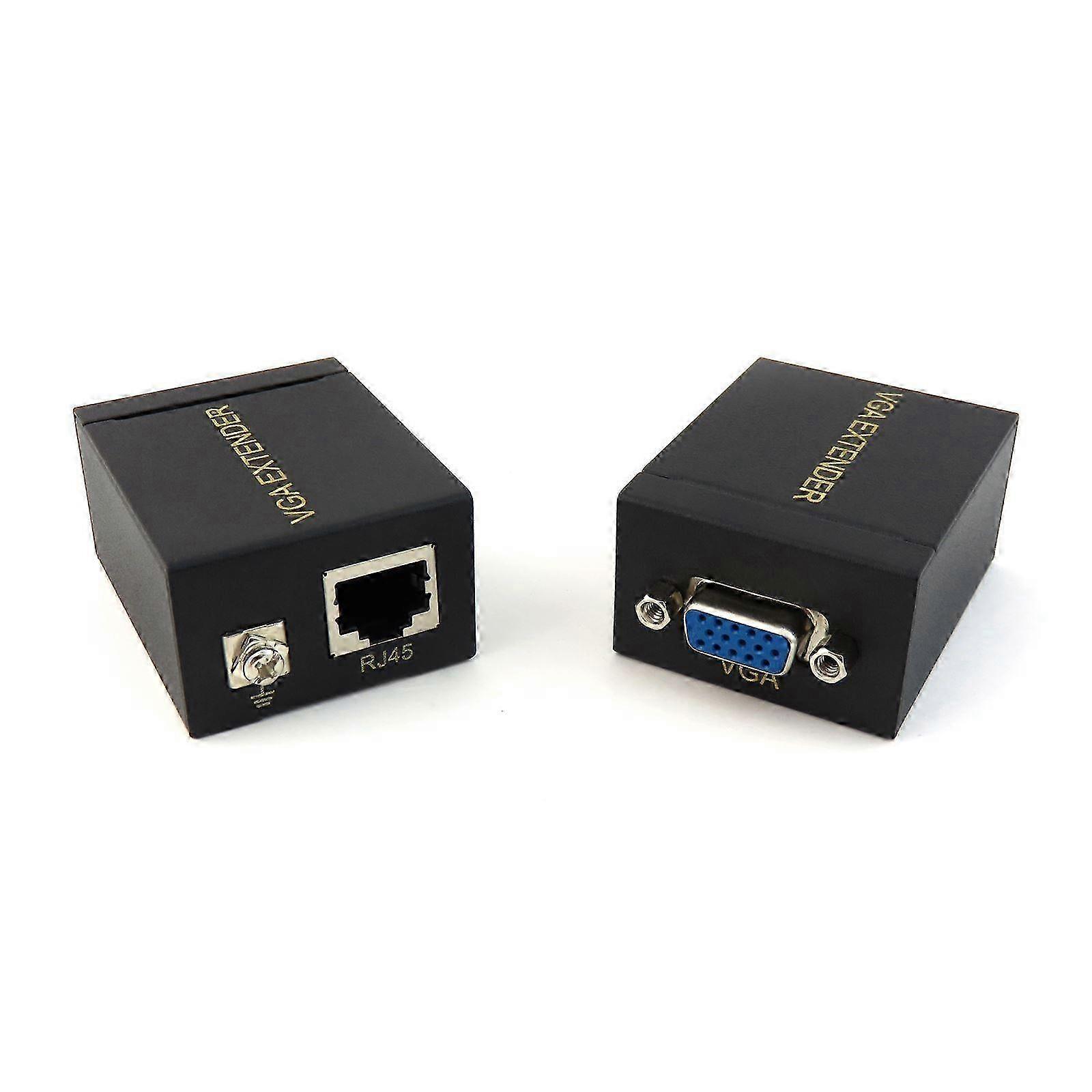 VGA extender up to 60 m over LAN Professional set for transmitting audio-video signal in VGA standard, without loss of signal quality. The device transmits the signal from the transmitter to the receiver (PC to monitor) for max. 60 meters. Cat 5e or 6 UTP or FTP or SFTP cable should be used for optimal video transmission. The kit consists of two parts: a transmitter and a receiver . Technical data: Transmitter: Signal input - VGA 15 PIN Signal output - RJ45 Receiver: Signal input - RJ45 Signal output - VGA 15 PIN The extender allows you to send a VGA signal over a distance of 60 m using an RJ45 network cable Resolution range: VGA, SVGA, XGA, SXGA, WXGA, UXGA Operating temperature - 0 - 40 C Humidity - 0-85 percent