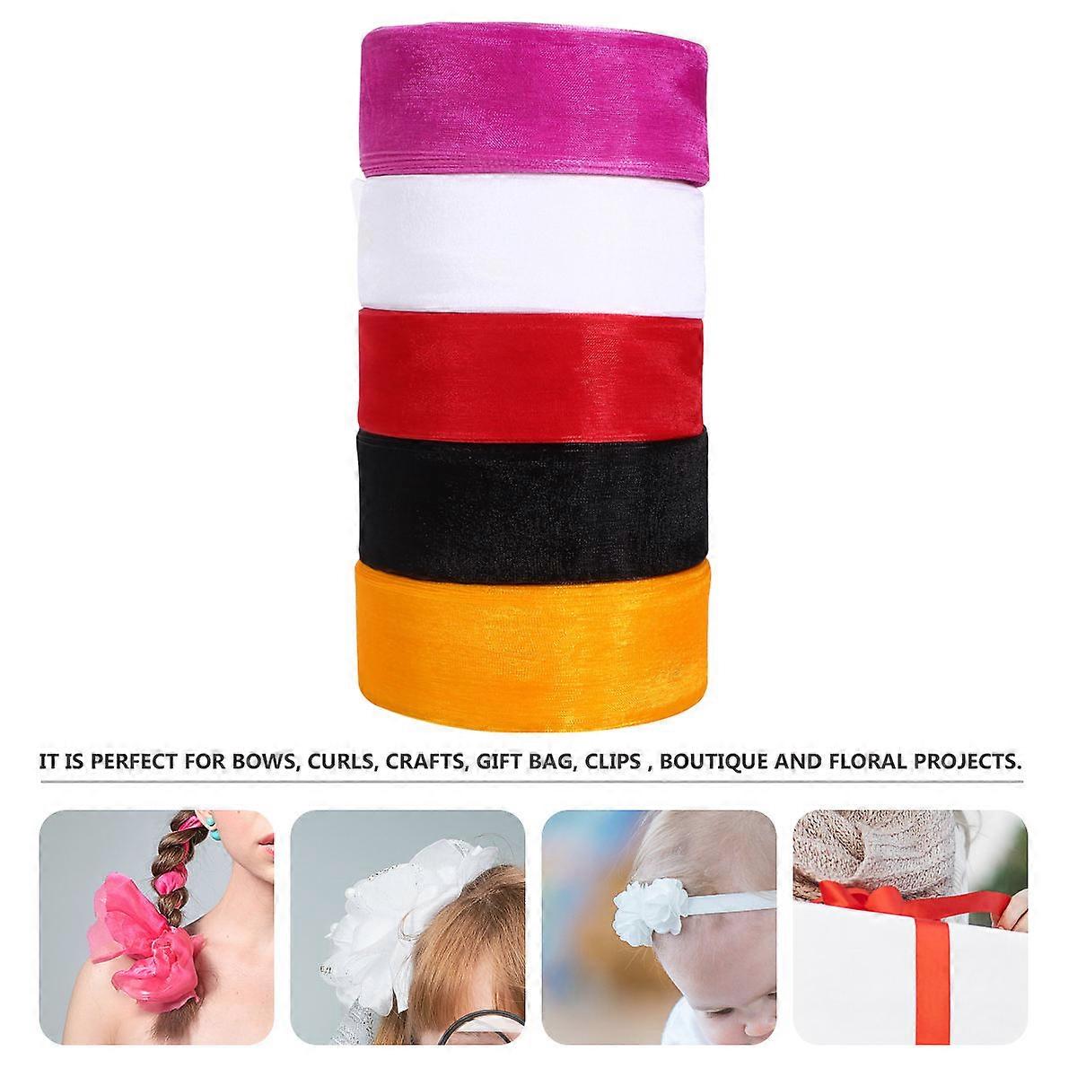 Decorative Ribbons Sheer Design Handmade Diy Material for Cake 5 Rolls White
