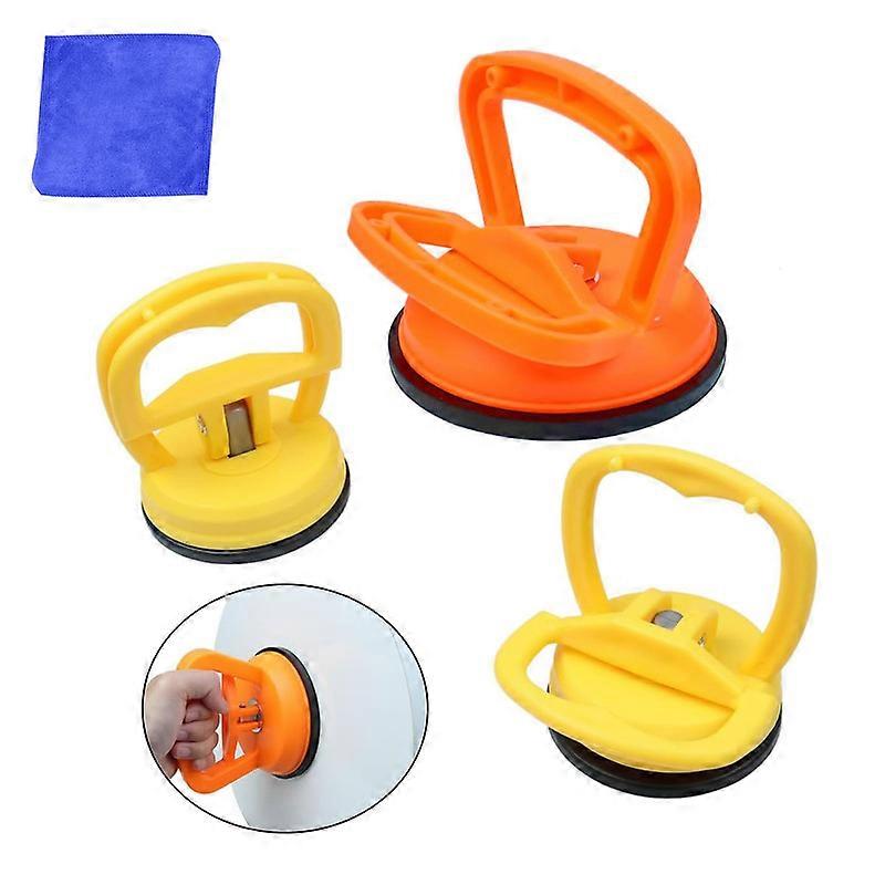 Quality Materials:The car dent puller are made of durable ABS material,durable natural rubber and strong metal core.Dent removal kit thickened natural rubber on the bottom to provides strong suction and seamless. The soft rubber pad is gentle on surfaces and wont scratch the paint. Best Car Dent Puller Kit:The car dent removal kits is an ideal multi-purpose tool,It comes with one large car dent puller (4.5 inches) and two small car dent repairers (2.2 inches).While compared to other car dent puller kits, we are also equipped with microfiber car wipe you need when dealing with dents for your maximum convenience.Just go with this dent removal kit. Easy to Use:First,clean the surface and make it dry. Next, heat the dent area and adjust the handle of the car dent puller to the detached position. Then, place the suction cup dent remover on the surface and push down on the air. Finally, quickly pull the double handle to the upward position, you can pull hard on the handle. Multi-Usages:The dent puller suction cup is helpful for removing car dents.By the way, it is also widely used to lift glass, steel, furniture,door and other smooth objects.And it can also be used to remove the screen or used as a phone holder to watch videos.