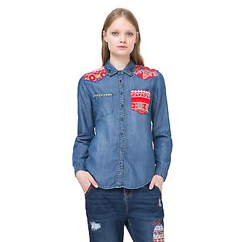 Desigual المرأة & أبوس؛s طويل الأكمام قميص الدنيم الغريبة