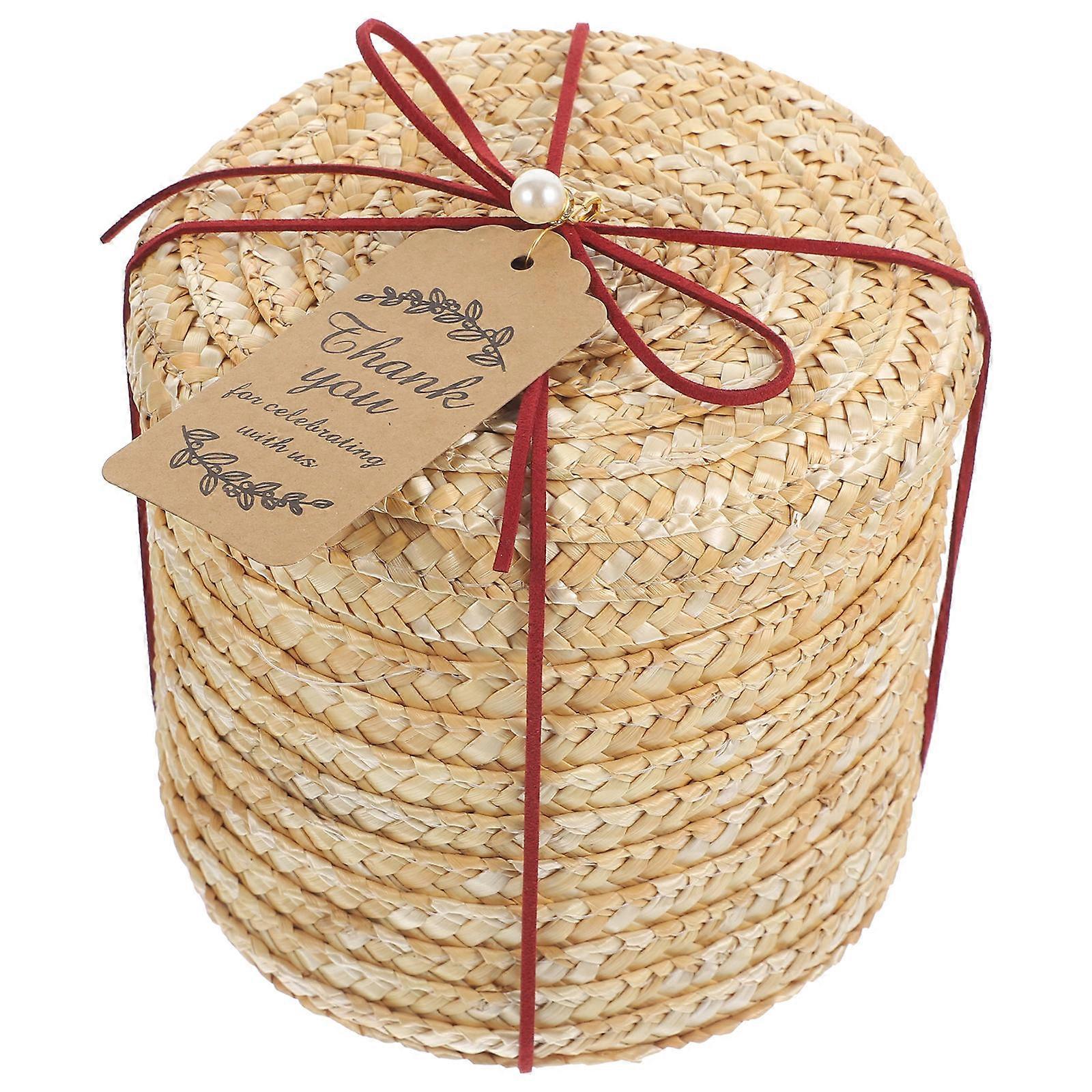 Desktop Storage Box Round Organizer Box for Storage Use 3Pcs Beige Set