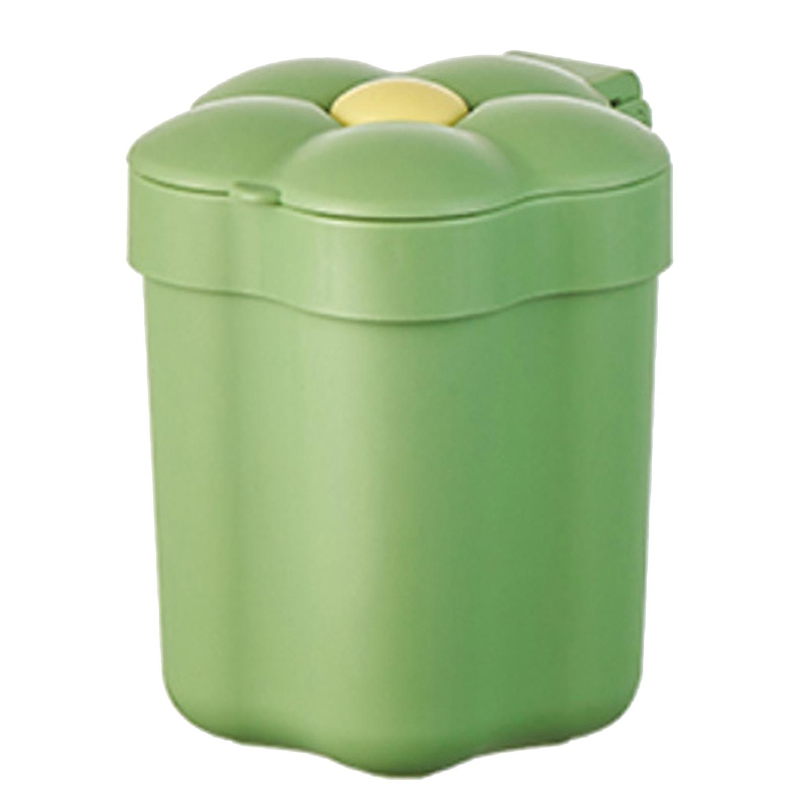 Desktop Trash Bin with Lid Flower Shape Small Garbage Can Large Opening Storage Paper Basket Green