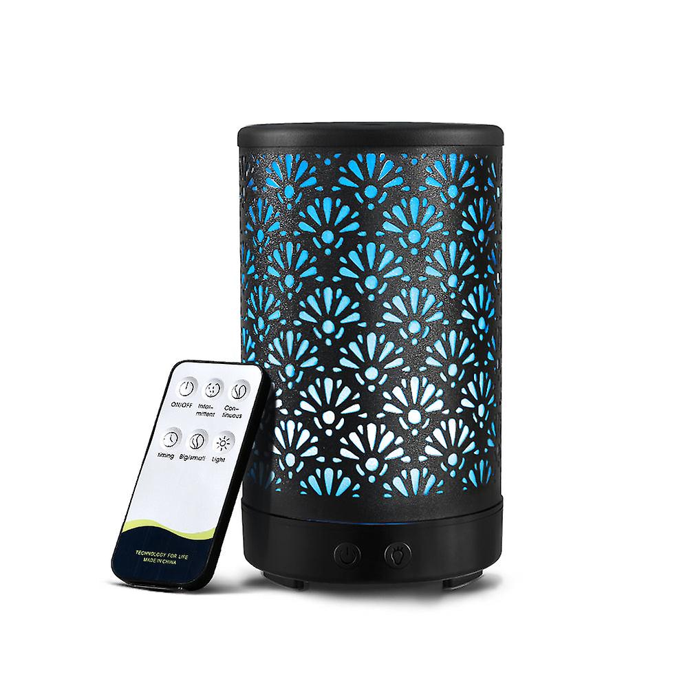 Devanti Aroma Diffuser Aromatherapy Essential Oils Metal Cover Ultrasonic Cool Mist 100Ml Remote Control Black Diffusers