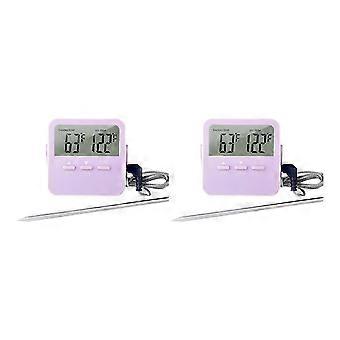 Digital Cooking Thermometer with LED Display, Stainless Steel Probe & Temperature Alarm for Cooking Timer, Purple