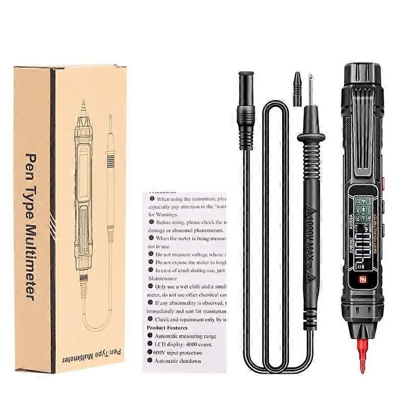 Features: The A3005A digital multimeter (standard edition) is the perfect tool for measuring voltage, current, and resistance in a compact and easy-to-use design. Featuring an ABS-construction, this pen-style multimeter comes with a testing cable and user manual, for your convenience. Ideal-for electricians, DIY enthusiasts, and anyone who-needs to measure electrical parameters with-precision. Whether you're working on a home-renovation project or troubleshooting an electrical issue, the A3005A multimeter is a must-have for any toolbox. With its reliable-performance, intuitive-interface, and durable construction, this digital multimeter is a valuable investment for professionals and amateurs alike. Specifications: Material:ABS Size:As Picture Shown Note: .Please allow 1-2cm errors due to manual measurement, make sure that you do not mind before you order. .Due to the difference between different monitors, the picture may not reflect the actual color of the item. Thanks for your understandings. Package includes: 1 Set Digital Multimeter