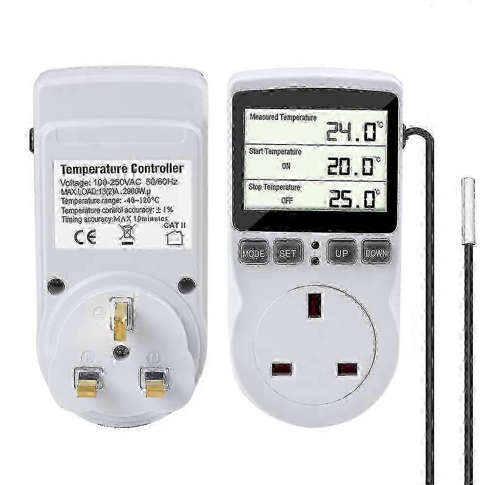 Digital Thermostat Controller Socket Outlet, Thermostat Uk Plug 230v/16a Digital Temperature Controller With Heating Cooling Mode, Lcd Scree