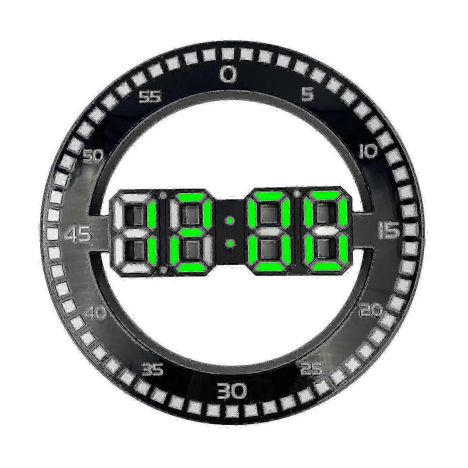 Take back the time when you looked at the wall to figure out the hours of the day. This digital wall clock makes it easy to see the time and does it in an unusually neat way. In addition to showing only hours and minutes, the watch also has a second viewer. For every second that passes, an LED light is lit up and allows you to keep an accurate check. The watch also has a sensor that reads the surroundings and increases its brightness when the room is dark. The stylish and minimalist wall clock can also be placed on the table and become an unusual interior detail.- Digital clock for both the wall and the table- Shows the seconds with LED lights- Modern and stylish clock without the eternal tickingSpecies:Color: BlackMaterial: PlasticDimensions: approx. 31.5 x 31.5 x 2.5 cmDimensions, packaging: approx. 33.5 x 33 x 4 cmTid format: 12 or 24 hPackage Contains: >1x Watch
